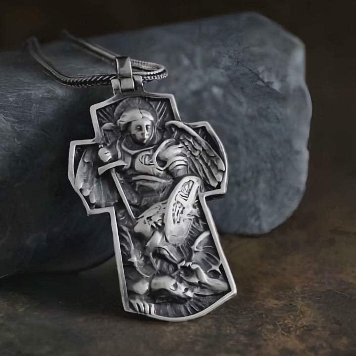 Saint Michael Archangel Silver Cross Necklace Jewelry Gift